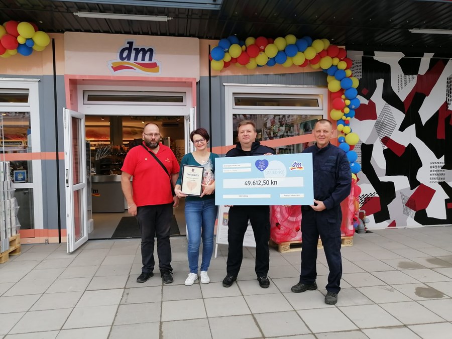 U sklopu natječaja {ZAJEDNO} za Petrinju, Glinu i Sisak, u kategoriji Društveno korisno djelovanje, dm je 8. lipnja 2021. dobrovoljnom vatrogasnom društvu Petrinja donirao sustav veza u vrijednosti 49.612,50 kuna.
